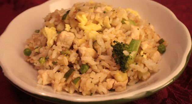 I usually make this with whatever protein (tofu, chicken, etc.) and veggies (any fresh or leftover, or frozen corn, peas, shelled edamame, etc.) I have on hand. The addition of toasted sesame oil adds a really nice flavor to the rice and I highly recommend adding it if you have it!