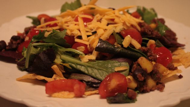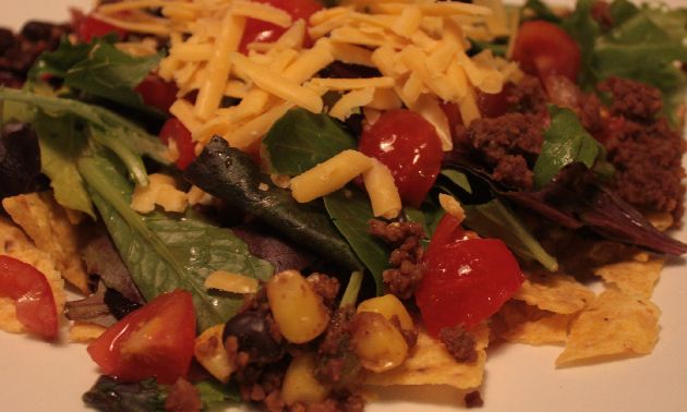 My kids love salad if it’s taco salad! Makes enough for at least 6 very hungry people.